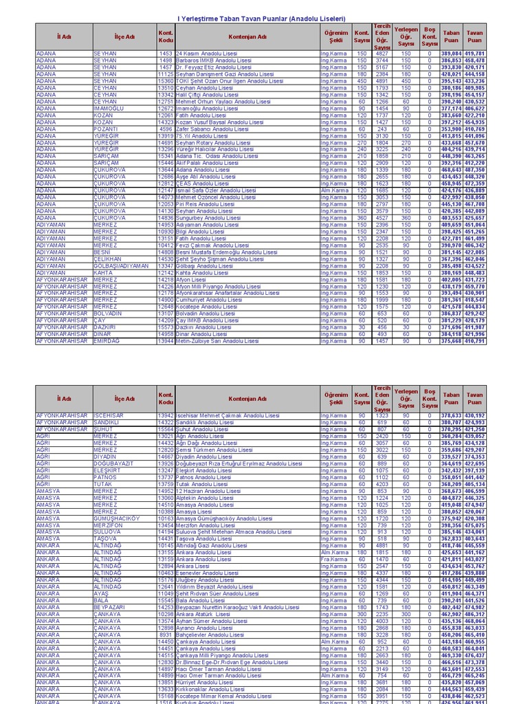 2012 Ortaogretim Kurumlarina Gecis Sistemi Yerlestirme Tavan Taban Puanlari Listesi Anadolu Liseleri Pdf Ucretsiz Indirin