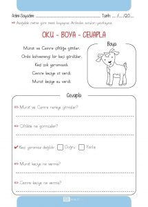 1 Sinif Turkce Okuma Anlama Soru Cevap Ilkokul Odevleri