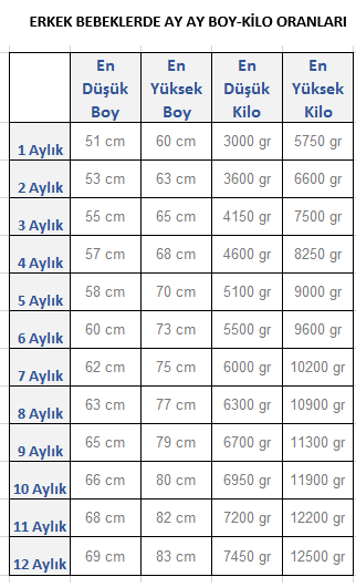 Erkek Ve Kiz Bebeklerde Boy Kilo Tablosu