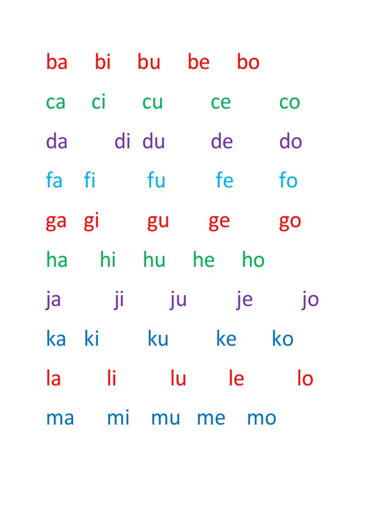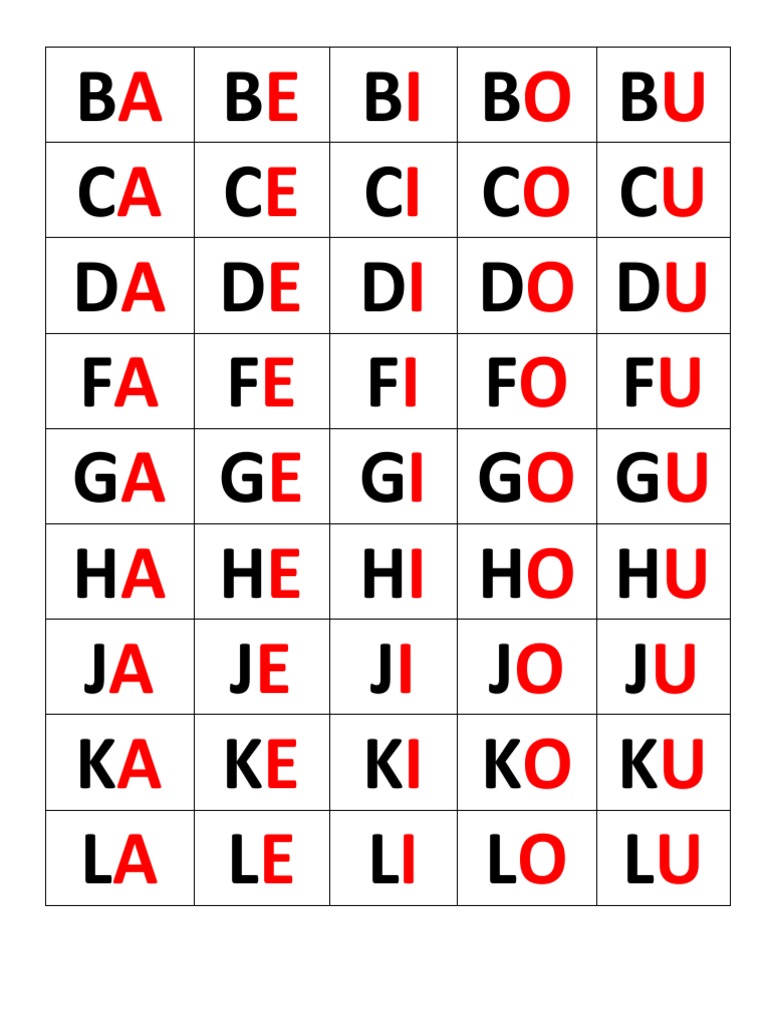 A I U E E O B Ba Bi Bu Be Be Bo C Ca Ci Cu Ce Ce Co D Da Di Du De De Do F Fa Kindergarten Reading Activities Preschool Learning Kindergarten Reading Worksheets