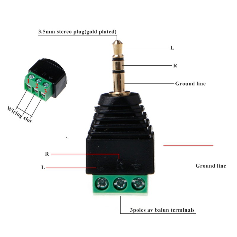 Yoodada 3 Pcs Video Av Balun 3 5mm 1 8 Stereo Male To Av 3 Screw Terminal Plug Connector Shopee Indonesia