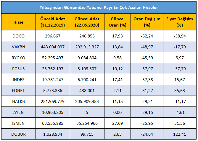 Borsa Lab On Twitter Yilbasindan Gunumuze Yabanci Payi En Cok Azalan Hisseler Doco Vakbn Rygyo Pgsus Indes Fonet Halkb Ayen Ismen Dobur Hisse Hissesenedi Borsa Takas Takasanaliz Https T Co Ue60g1qcta Https T Co Hf8y7oraut