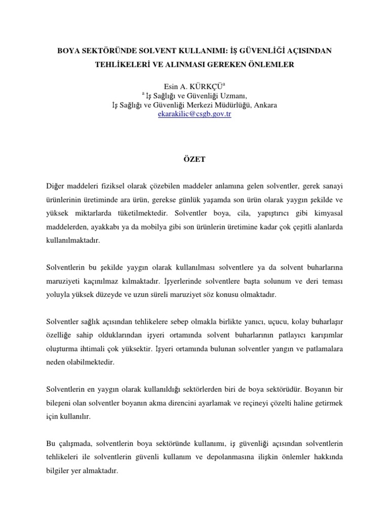 Pdf Boya Sektorunde Solvent Kullanimi Is Guvenligi Acisindan Tehlikeleri Ve Alinmasi Gereken Onlemler Adamin Biri Academia Edu