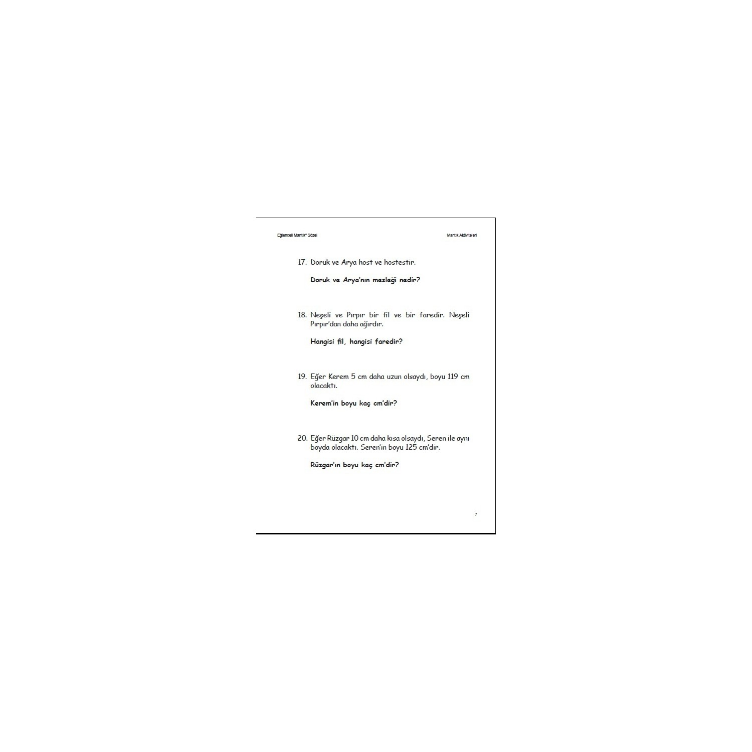 Eglenceli Mantik Sozel Kitabi Ve Fiyati Hepsiburada