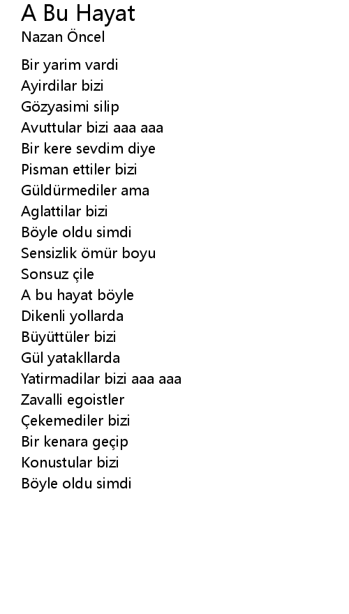 Nazan Oncel A Bu Hayat Lyrics Musixmatch