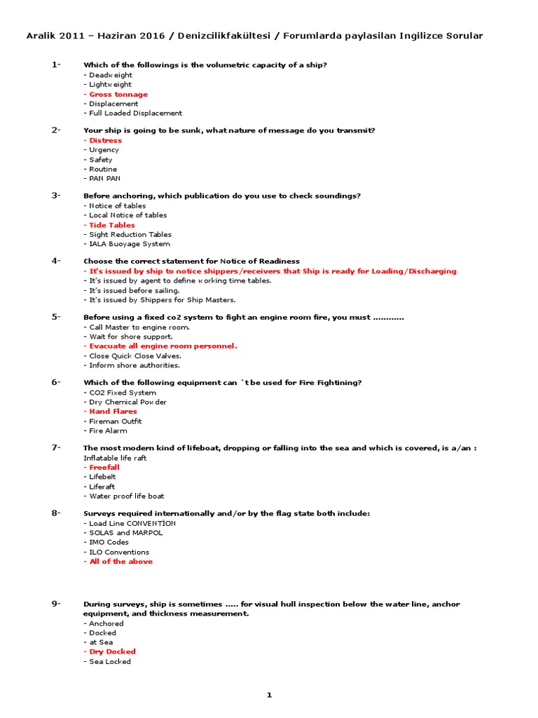 Denizcilik Ingilizcesi 1564 Soru Tonnage Water Transport